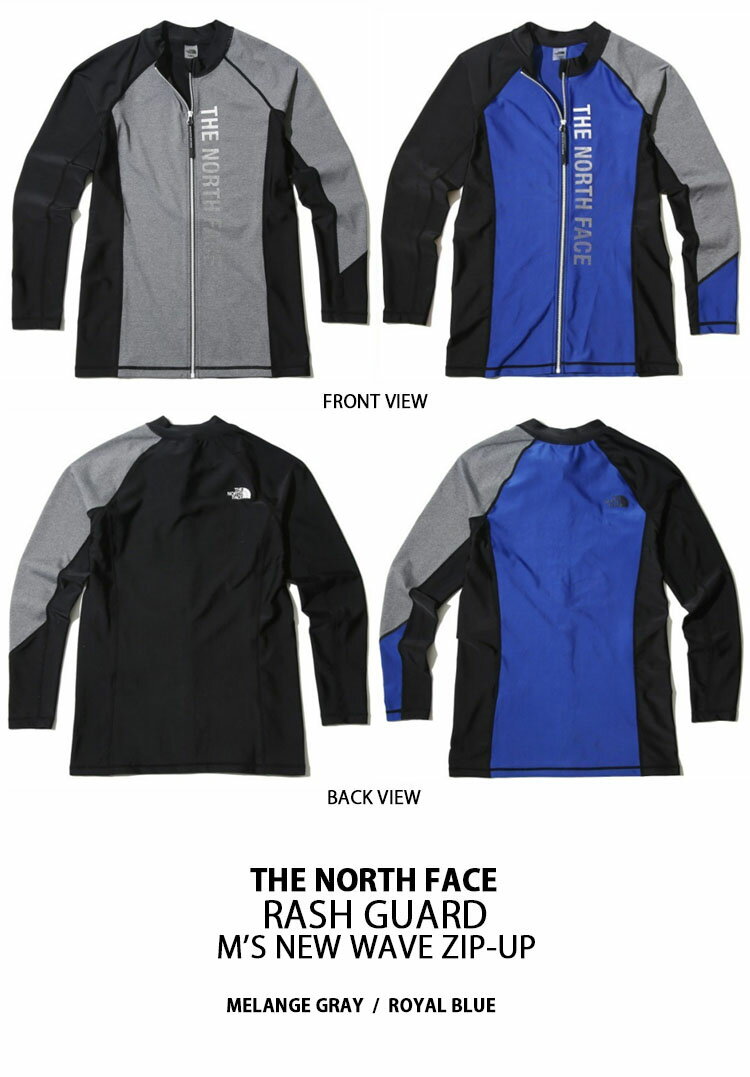 THE NORTH FACE ノースフェイス ラッシュガード M'S NEW WAVE ZIP UP ジップアップ UVカット ハイネック 立ち襟 UVカット 長袖 ロングスリーブ 冷感素材 マリンスポーツ サーフィン グレー ブルー メンズ レディース NJ5JL07K/L【中古】未使用品