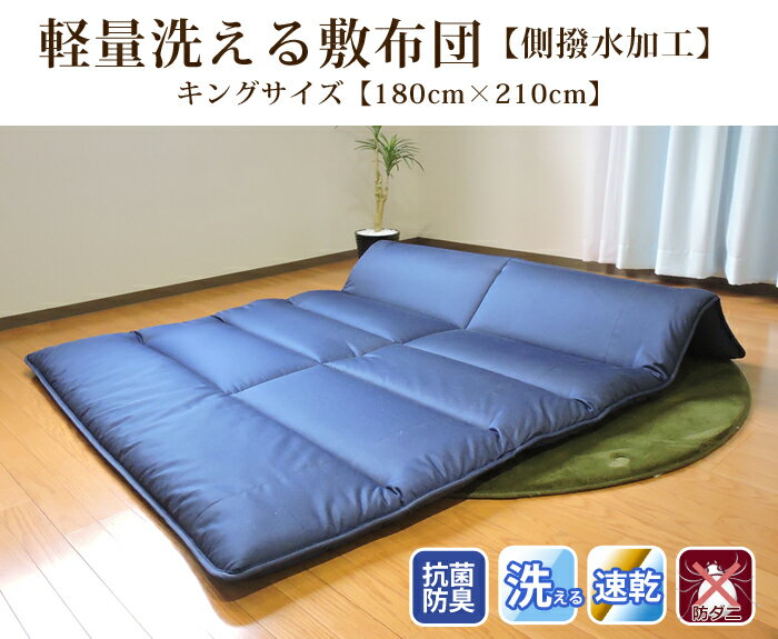 敷き布団 洗える 軽量 キング デニム調 固わた 防ダニ 薄型 抗菌 防臭 撥水加工 ポリエステル 固芯入 帝人 ロング ゆったり ふとん 日本製 眠り姫 寝具 敷布団 送料無料 マットレス 敷きパッド