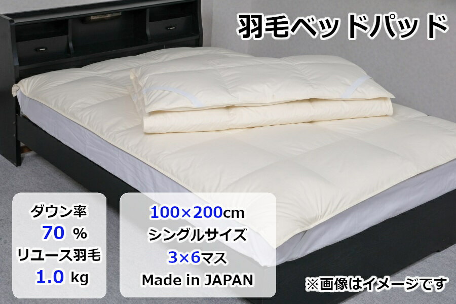 【ふるさと納税】国産【羽毛ベッドパッド】ダウン70% 100×200(シングル)【リユース羽毛】 エシカル エコ ダウン 羽毛 寝具 敷きパッド 日本製