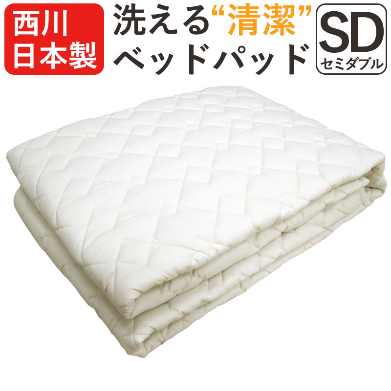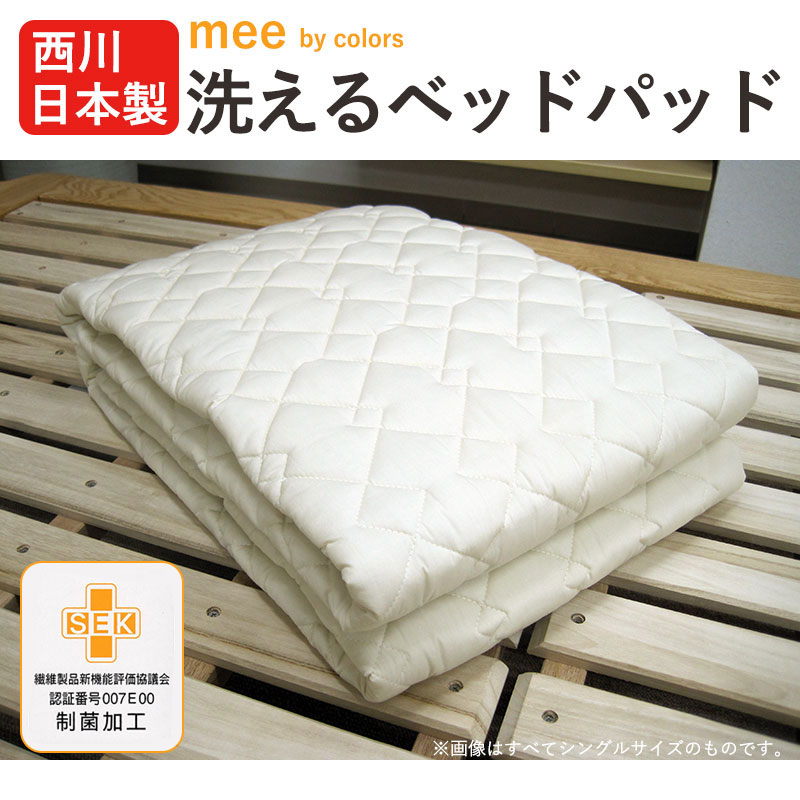 【ポイント10倍・期間限定】 送料無料♪【西川】日本製 ベッドパッド セミダブル mee ウォッシャブル/制菌加工/120×200cm/SD/丸洗い/西川/ME00/西川リビング/清潔/抗菌防臭/ベットパッド/パット/洗える/洗濯機/ベッド用/SALE/セール