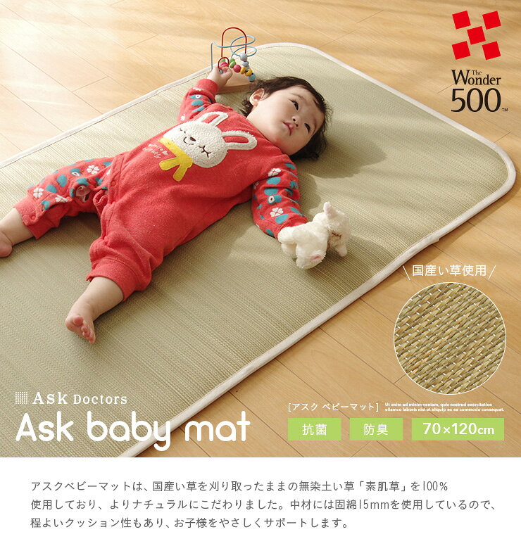 【割引クーポン配布中】【医師と共同開発/国産無染土い草使用】アスク ベビーマット 70x120cm 敷きパッド 敷きパット 日本製 抗菌 防臭 吸湿 汗取り ベビー キッズ Ask babymat 赤ちゃん お昼寝グッズ ベビー寝具 夏用 寝具
