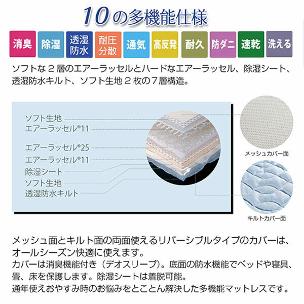 マットレス 三つ折り セミダブルロング エアロ 厚さ4cm 高反発 マット 洗える 体圧分散 折りたたみ 硬質 敷パッド 日本製 敷布団 寝具 眠り姫 送料無料