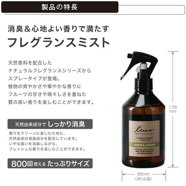 ●内容量:300mlスプレー約800回分の大容量タイプで、容量を気にせず、お部屋やクルマにスプレーすることができます。