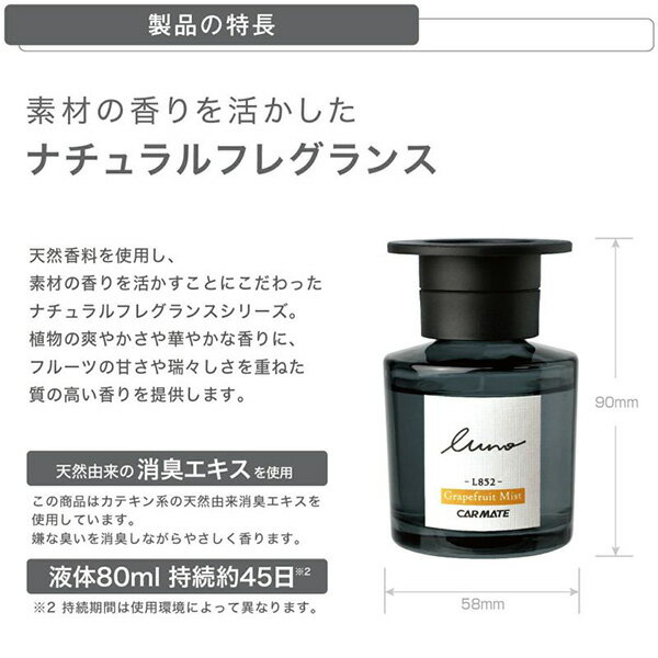 品名:LUNO LIQUID HOMME GRAPE FRUIT MISTカラー:ブラック製品サイズ:H90×W58×D58(mm)品番:L-852メーカー:カーメイト