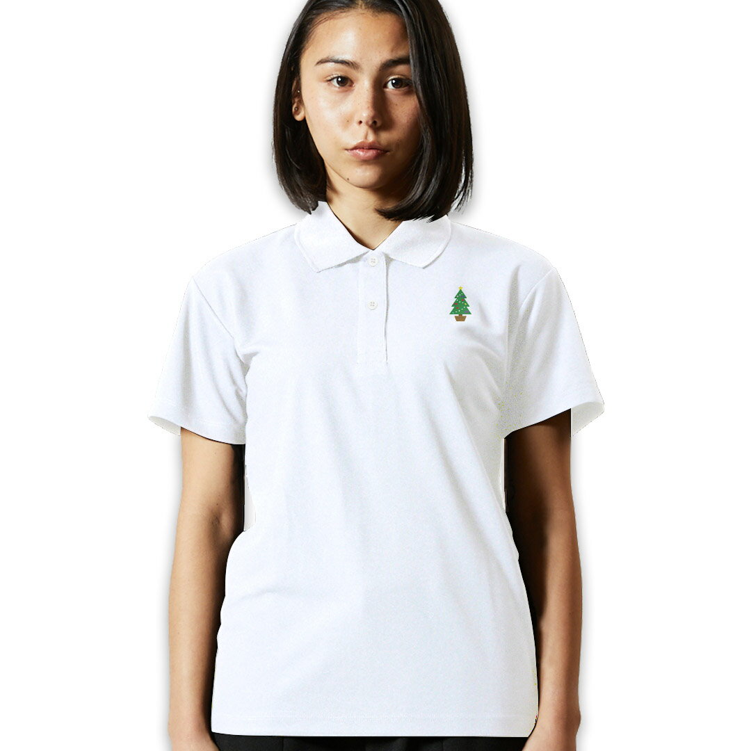 選べる4カラー レディース 女性 ウーマン ドライポロシャツ 鹿の子 メンズ 半袖 ホワイト グレー ライトブルー ベビーピンク ワンポイントデザイン Polo shirt シワが付きにくい 乾きやすい M L 017666 クリスマス ツリー クリスマス カラフル