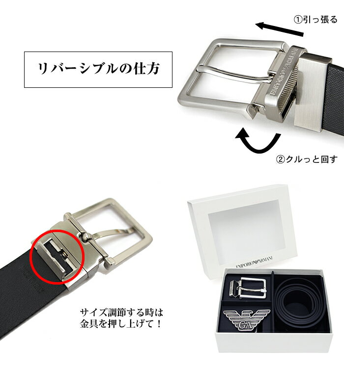 EMPORIO ARMANI エンポリオアルマーニ リバーシブルレザーベルト フリーカット バックル2個セット BLACK/BLACK Y4S270 YLP4X アルマーニ ベルト 回転式バックル 本革 ビジネス イタリア製 ラッピング対応 ベルト メンズ ブランド ベルトセット