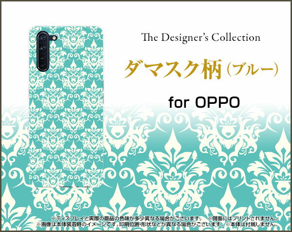 OPPO Reno3 Aオッポ リノ スリー エーauオリジナル デザインスマホ カバー ケース ハード TPU ソフト ケースダマスク柄(ブルー)
